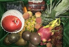 Подарочная коробка экзотических фруктов состоит из: Манго Таиланд 1 шт, Питахайя Таиланд 1 шт, Мангостан Таиланд 2 шт, Рамбутан Таиланд 2 шт, Клубника Греция 0,25 кг