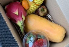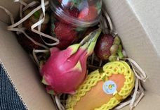 Подарочная коробка экзотических фруктов состоит из: Папайя Таиланд 1 шт, Манго Таиланд 1 шт, Питахайя Таиланд 1 шт, Мангостан Таиланд 1 шт, Клубника Греция 0,25 кг, Кумкват 0,05 кг